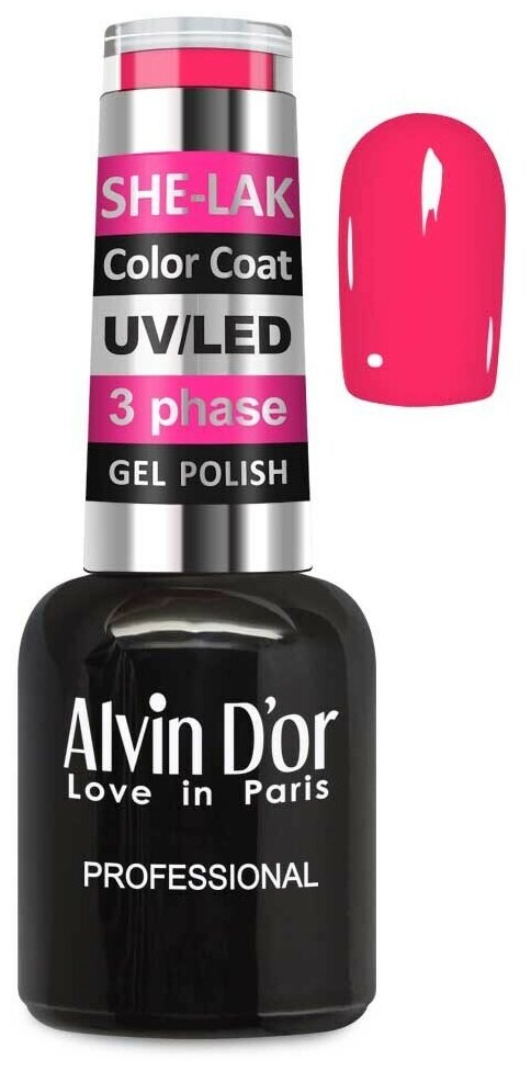 Alvin D'or, Гель лак для ногтей SHE-LAK Сolor Coat тон 3514 ярко-розовый