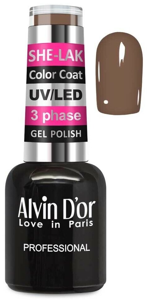 Alvin D'or, Гель лак для ногтей SHE-LAK Сolor Coat тон 3578 блестящий коричневый