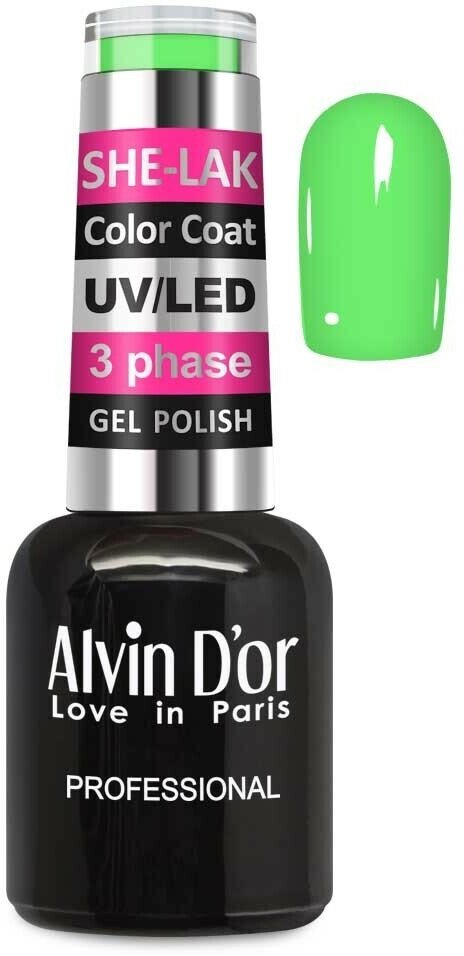 Alvin D'or / Алвин Дор Гель лак для ногтей SHE-LAK Color Coat 3563 ярко-зеленый в стеклянном тюбике 8мл