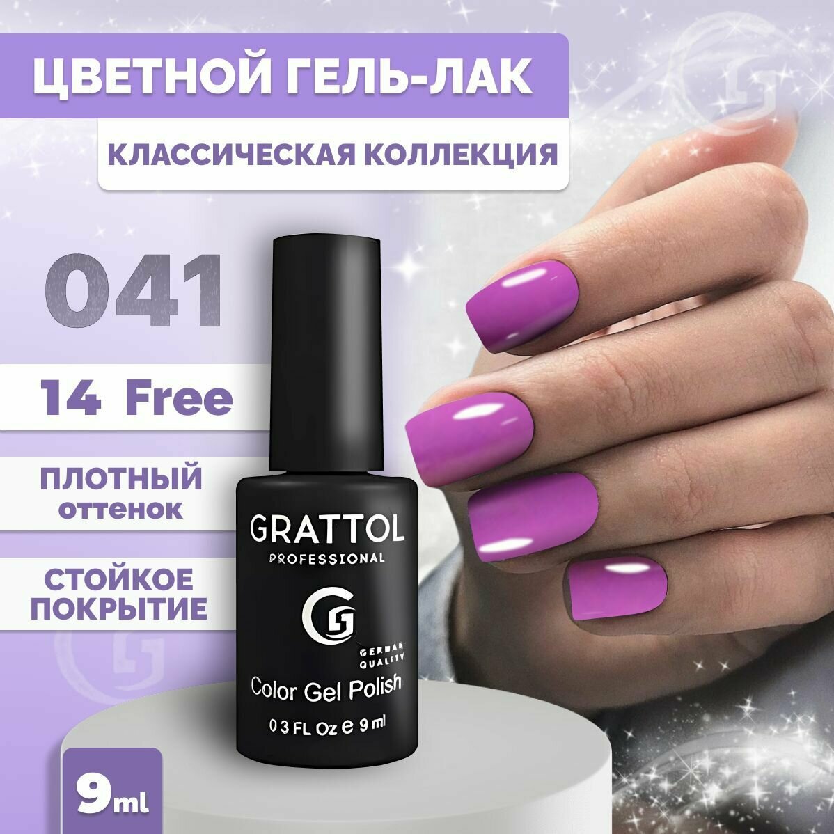 Гель-лак №04 Color Gel Polish Grey Violet 9 мл, Grattol