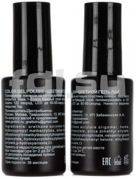 GRATTOL, Гель-лак тон №97, Rouge Noir, 9 мл
