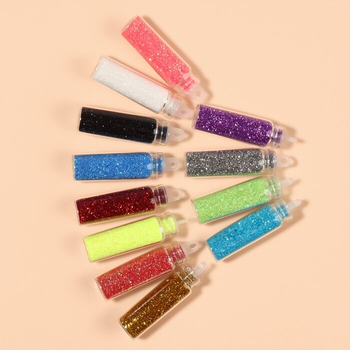 Блёстки для декора, мелкие, набор 12 бутылочек, разноцветные (арт. 545250)