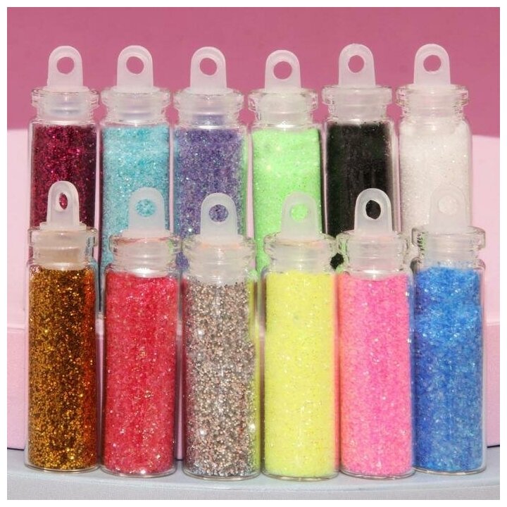 Блёстки для декора, мелкие, 12 бутылочек