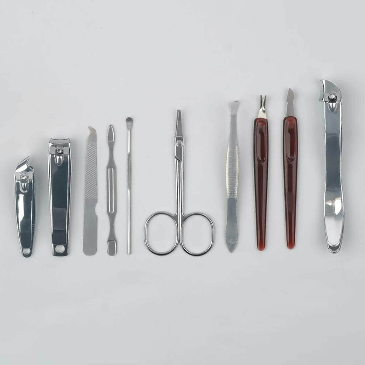 Набор маникюрный, 10 предметов, в футляре, цвет коричневый (комплект из 3 шт)