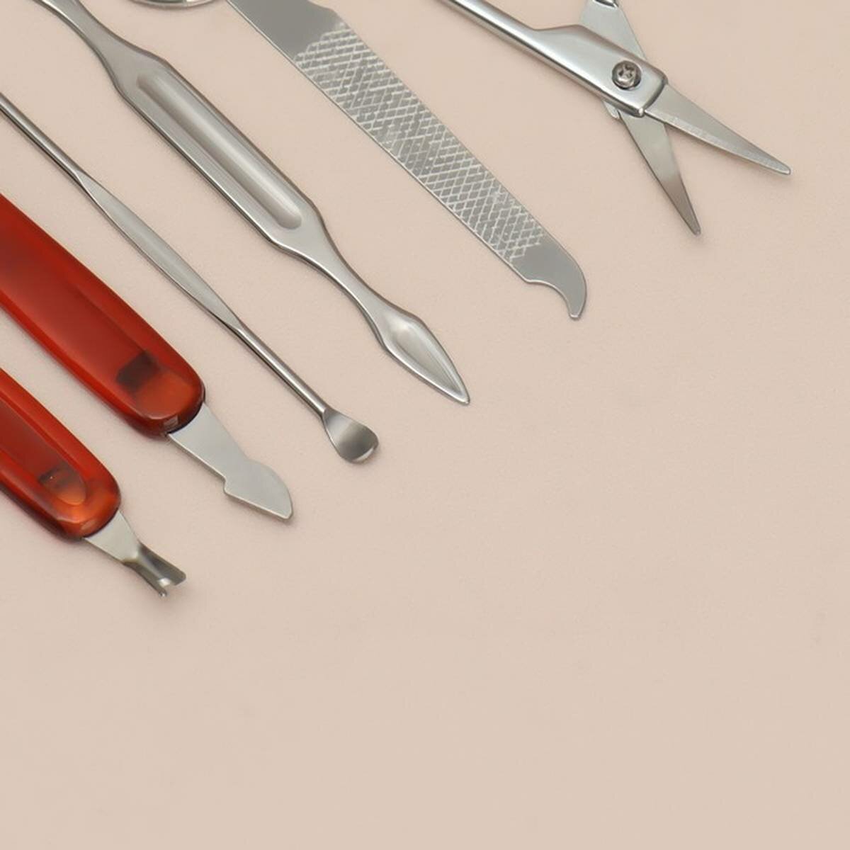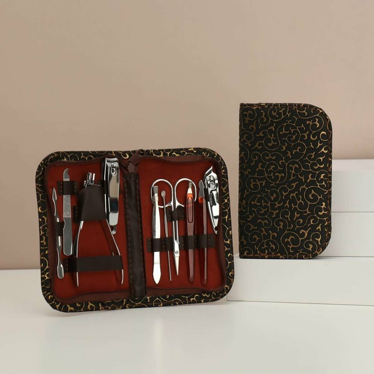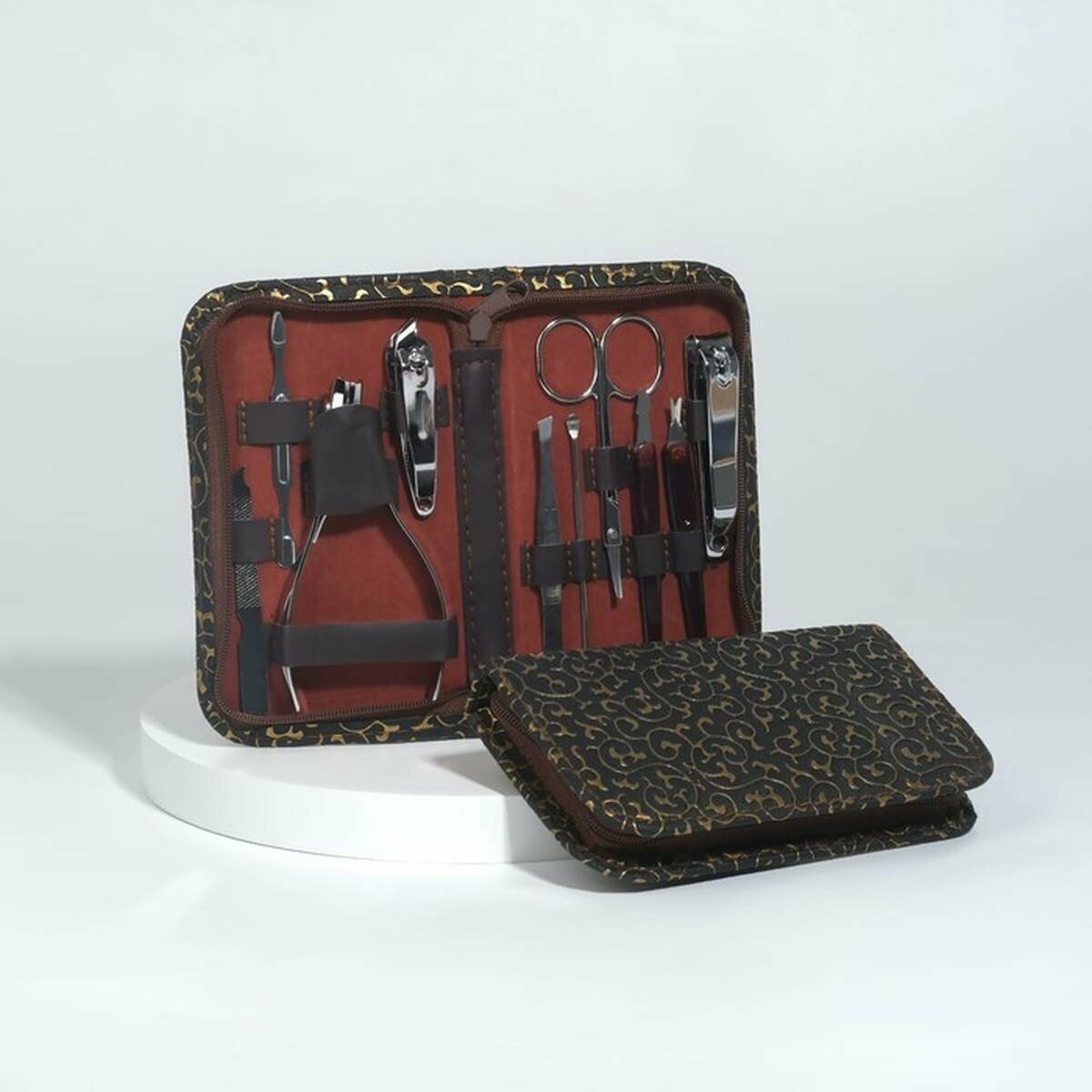 Набор маникюрный, 10 предметов, цвет коричневый .