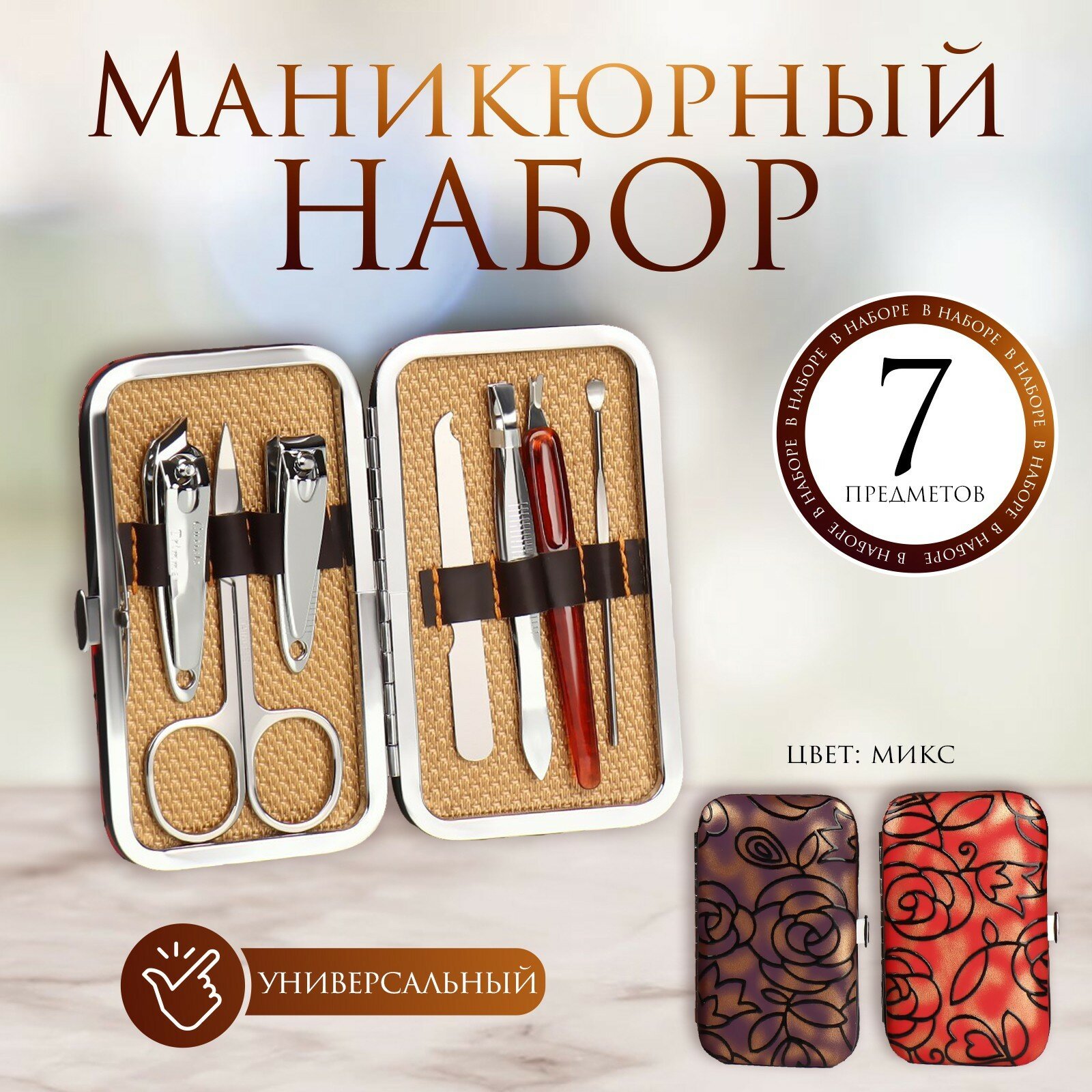 Купить Набор маникюрный «Розы», 7 предметов, в футляре, цвет микс