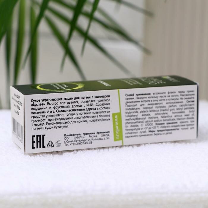 Сухое укрепляющее масло для ногтей Milv Lychee, с шиммером, 15 мл интересное: