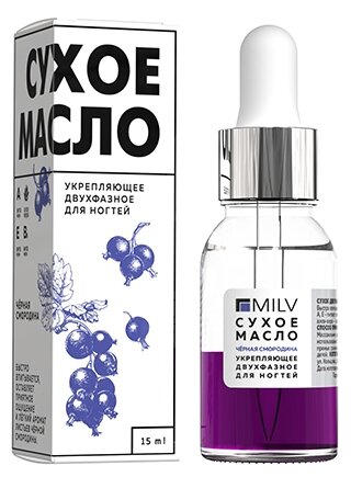 MILV, Сухое двухфазное масло для ногтей «Чёрная смородина», 15 мл