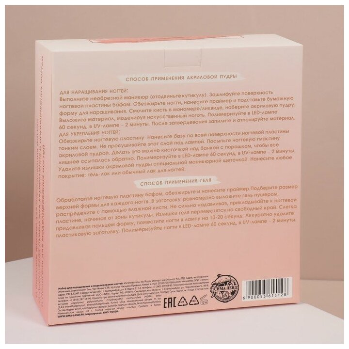 Набор для наращивания ногтей: верхние формы, розовая акриловая пудра, гель, в картонной коробке