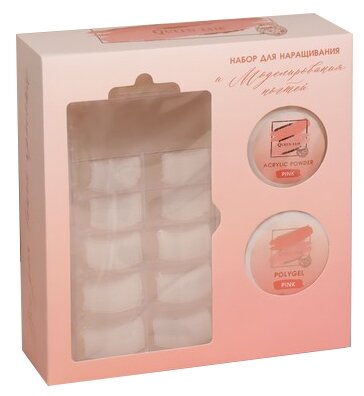 Набор для наращивания ногтей: верхние формы, розовая акриловая пудра, гель, в картонной коробке