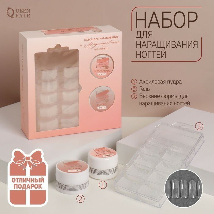 Queen fair Набор для наращивания ногтей: верхние формы, белая акриловая пудра, гель, в картонной коробке