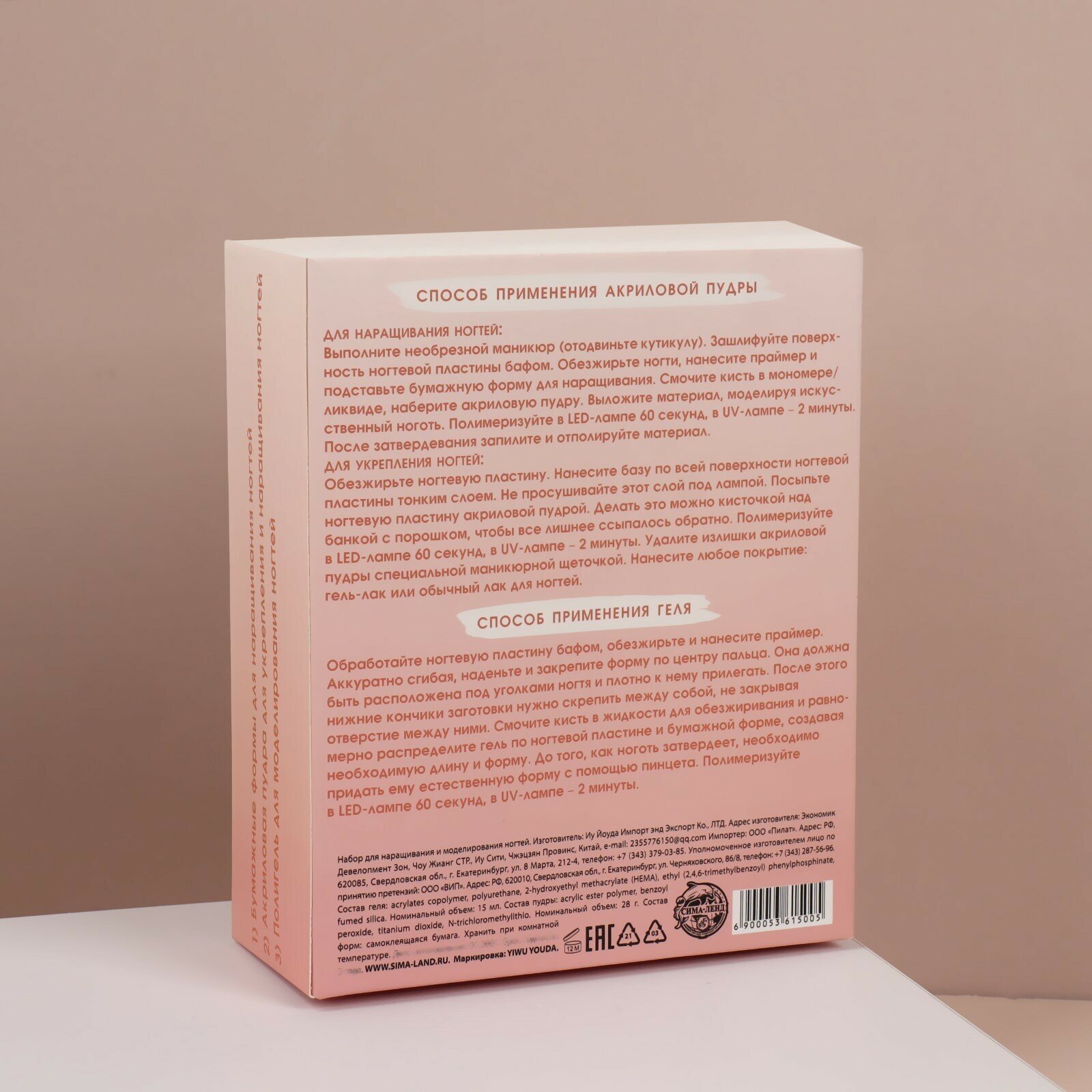Набор для наращивания ногтей: нижние формы, розовая акриловая пудра, гель, в картонной коробке