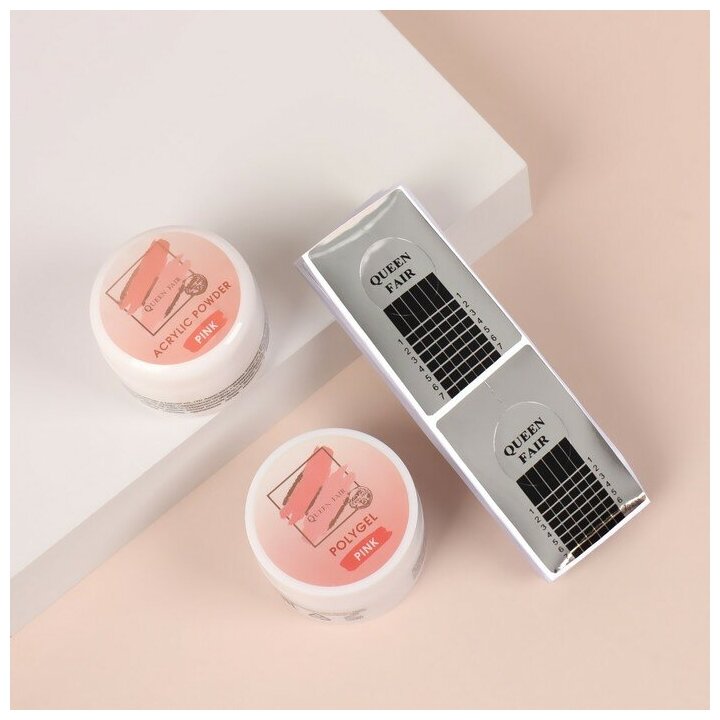 Queen fair Набор для наращивания ногтей, 3 предмета: нижние формы, розовая акриловая пудра и гель