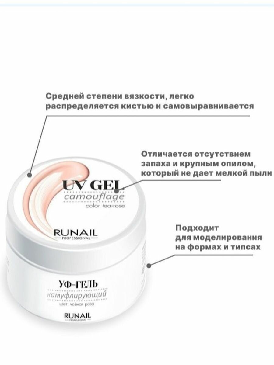 RUNAIL, Камуфлирующий УФ-гель, Чайная роза, 30 г, №3748