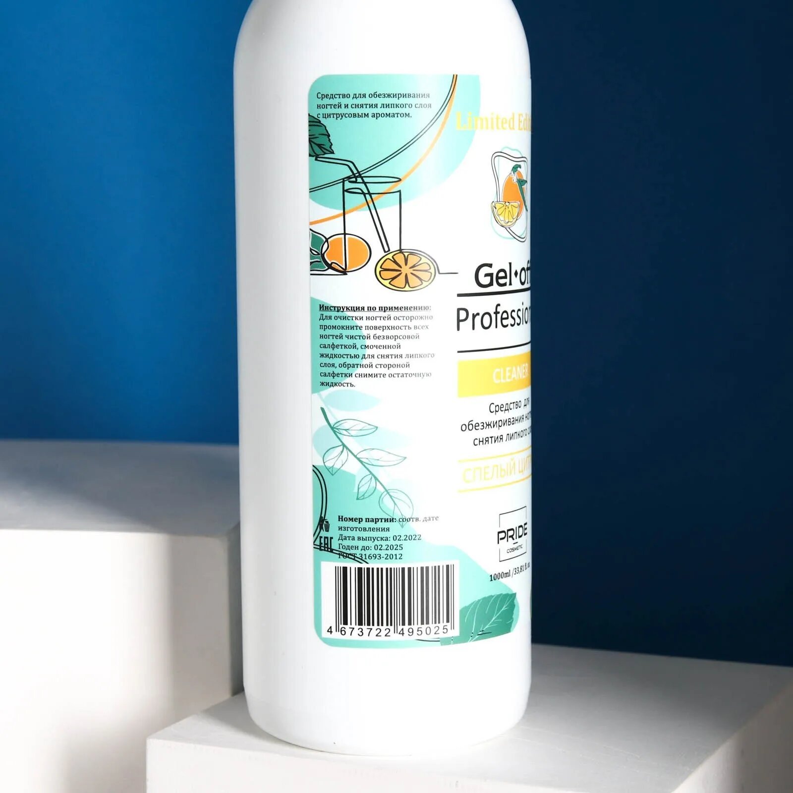 Средство для обезжиривания ногтей и снятия липкого слоя GEL- OFF CLEANER "Спелый цитрус", 1000 мл