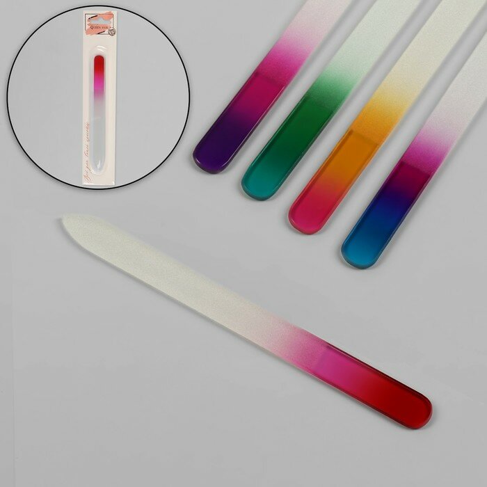Пилка стеклянная для ногтей «Радуга», 14 см, в чехле, на блистере, цвет микс интересное: