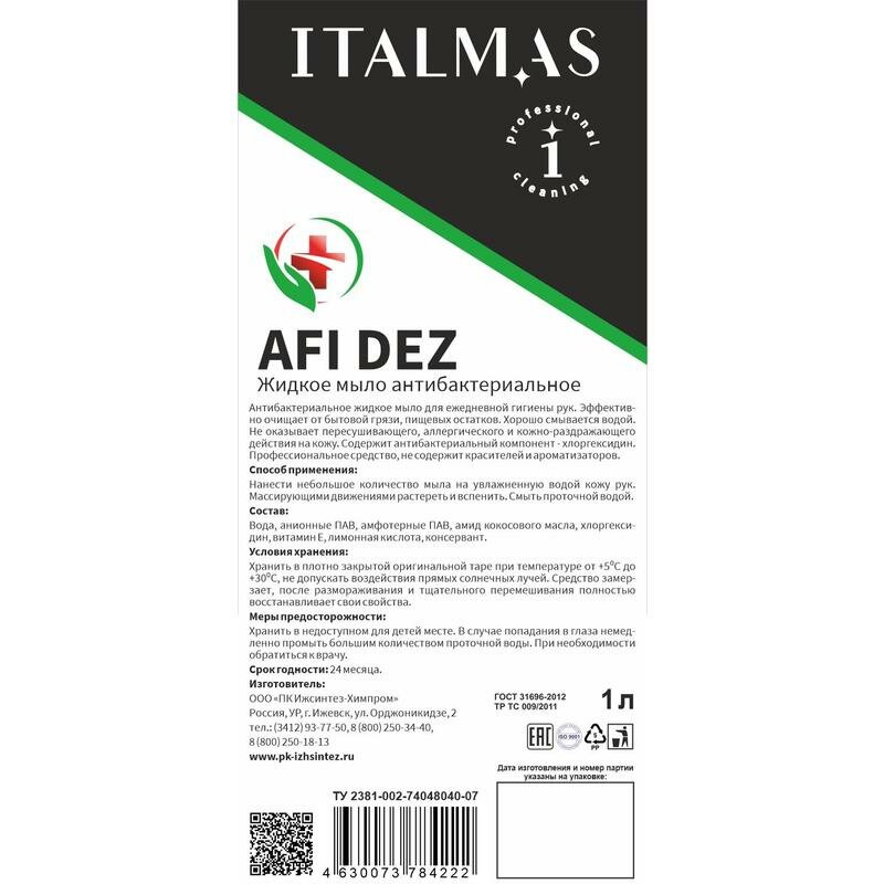 Мыло жидкое с антибактериальным эффектом IPC Afi Dez, 1 л IPC 5512765 .