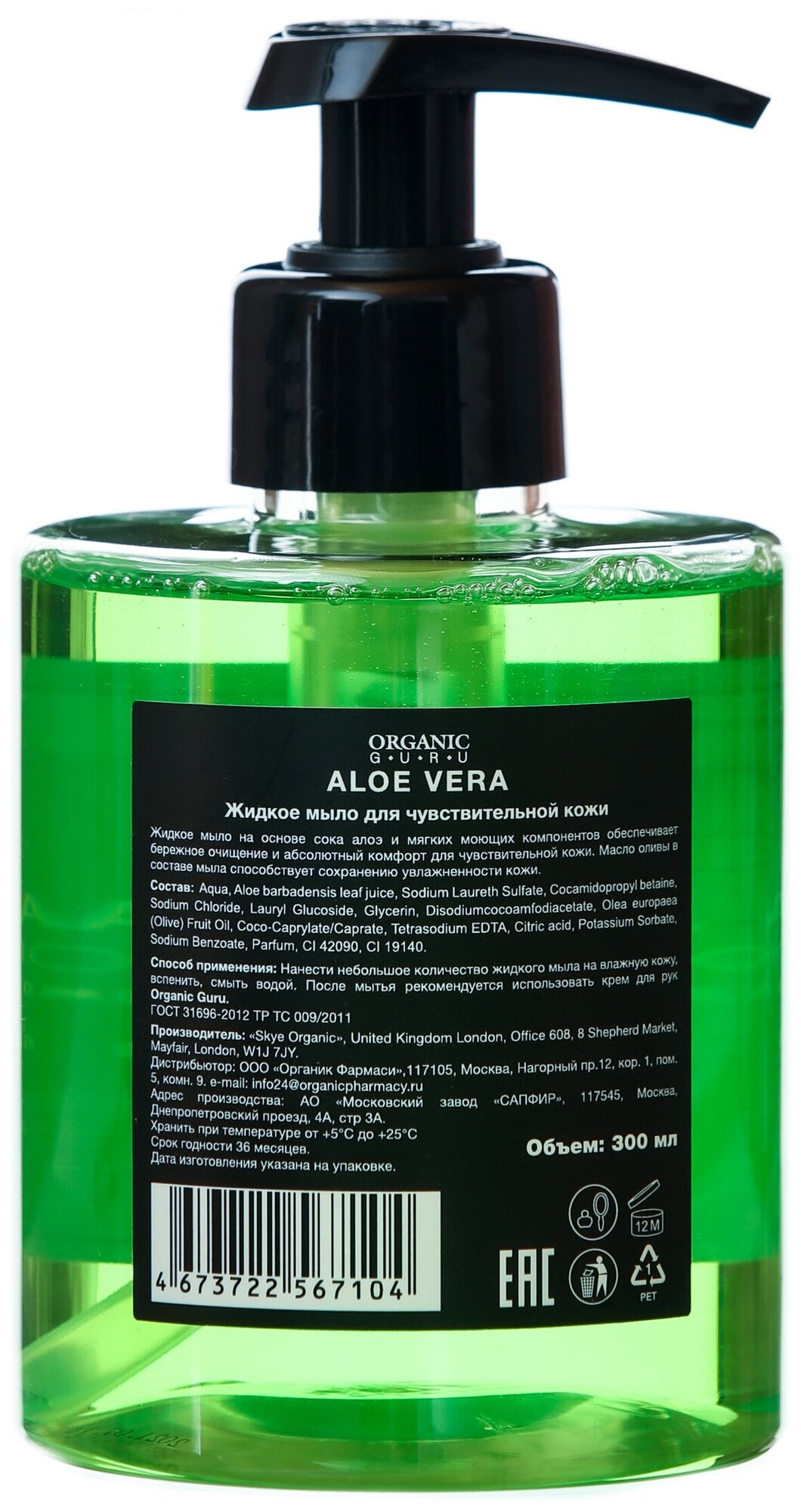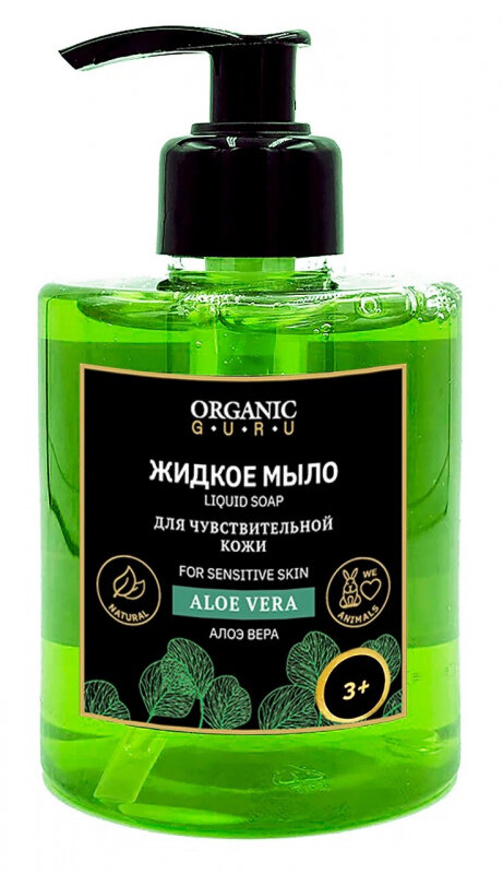 Organic Guru Натуральное жидкое мыло "Алоэ Вера" для чувствительной кожи, 300 мл. Органик Гуру интересное: