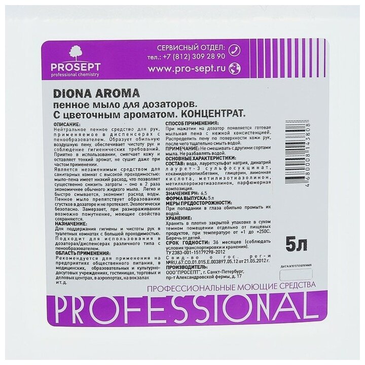 Diona Пенное мыло для дозаторов Diona Aroma, цветочный аромат, 5л интересное: