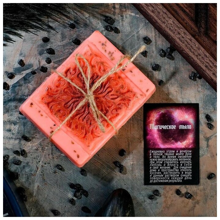 Магическое мыло "Для гармонии в отношениях" с косточкой клубники, розовое, 100гр (1 шт.)
