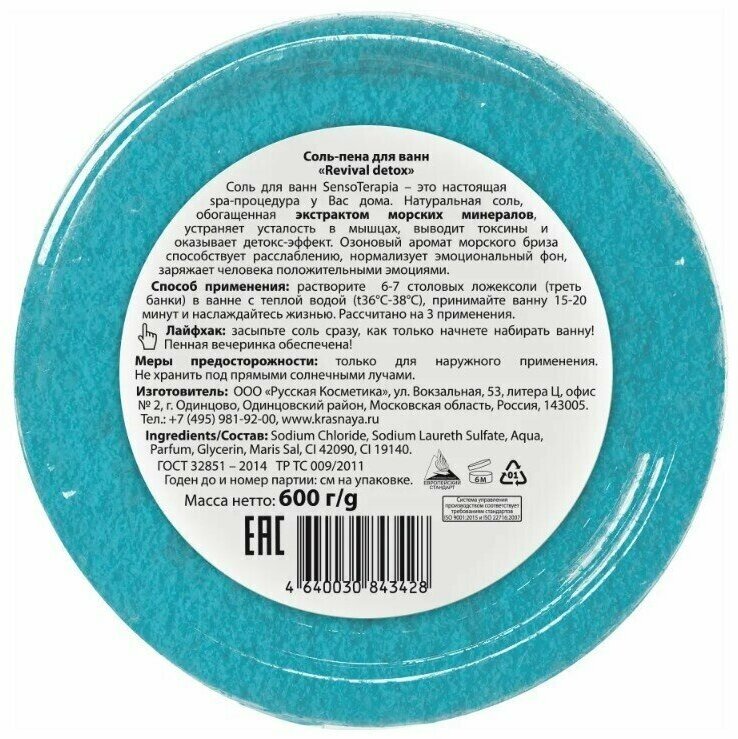 Соль-пена для ванн Senso Terapia Revival Detox детокс 600 гр. интересное: