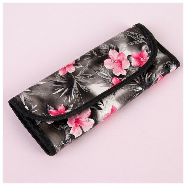 Набор кистей для макияжа «Цветение», 7 предметов, чехол на кнопке, цвет серый/розовый