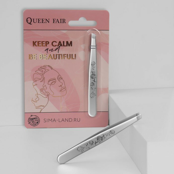 Queen Fair Пинцет «You are amazing» скошенный, узкий, 9 см, в блистере, цвет серебристый
