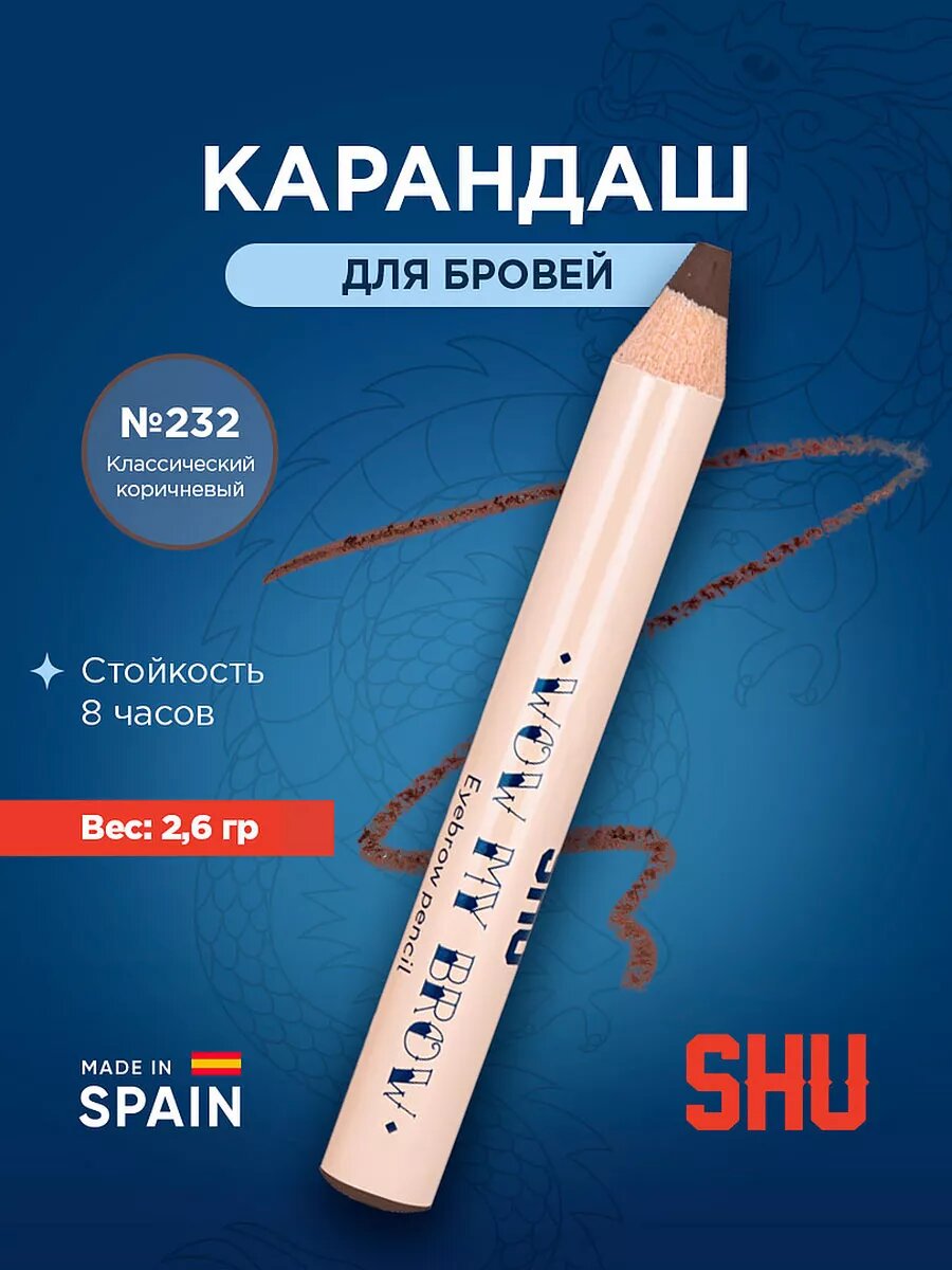 SHU Карандаш для бровей WOW-MY-BROW, №232 классический коричневый