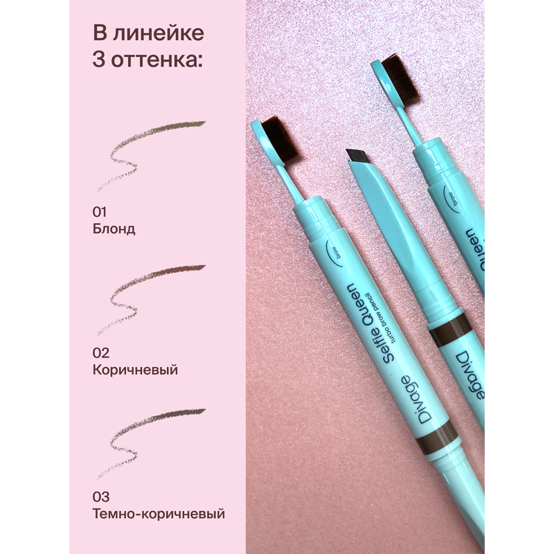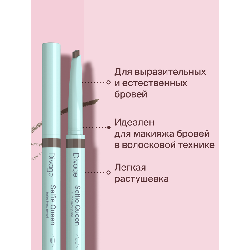 Divage / Диваж Карандаш для бровей Selfie Queen Turbo 02 для любого типа кожи с 18 лет коричневый с щеточкой 3г / декоративная косметика