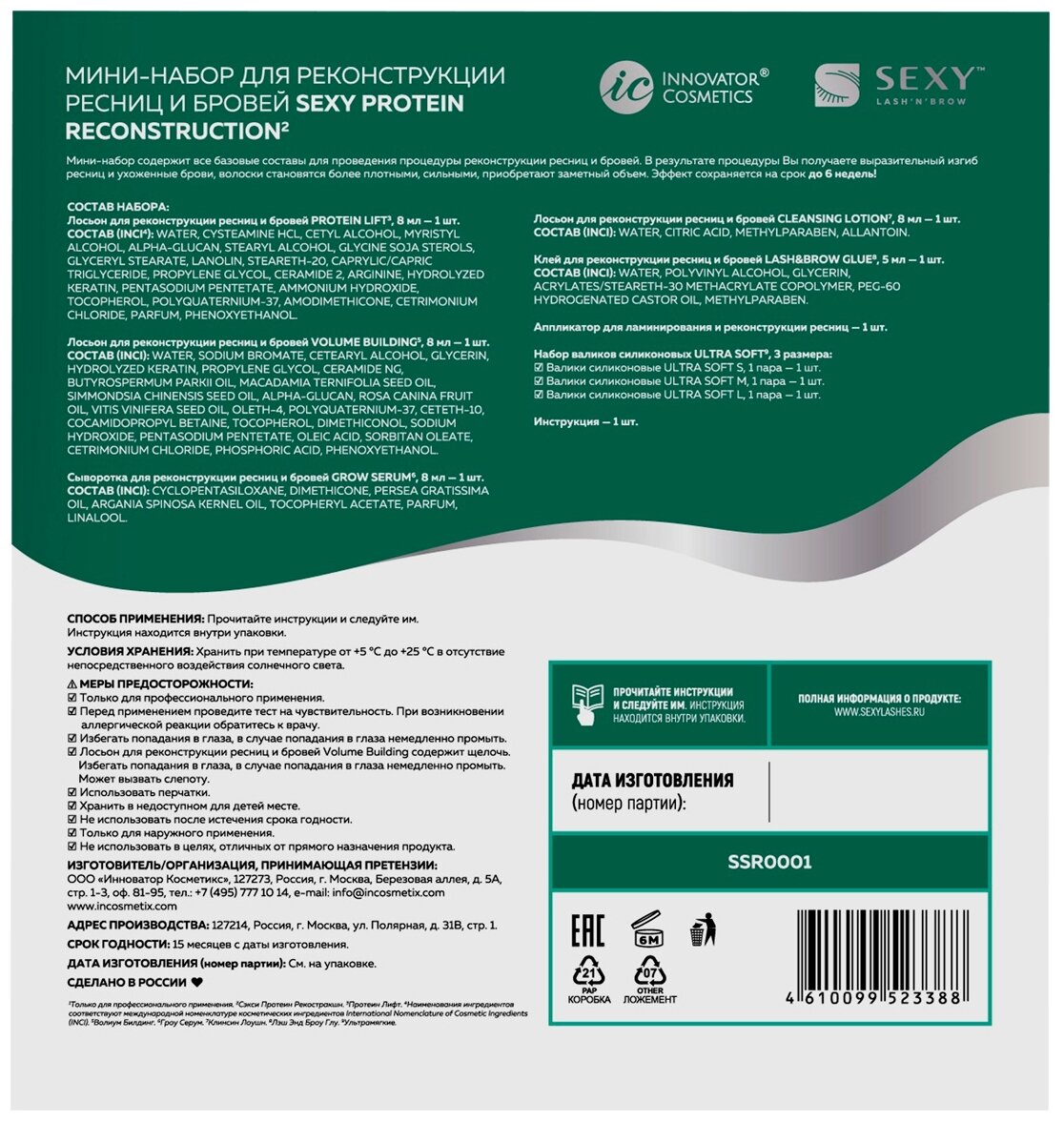 Мини-набор протеиновой реконструкции ресниц и бровей SEXY PROTEIN RECONSTRUCTION интересное: