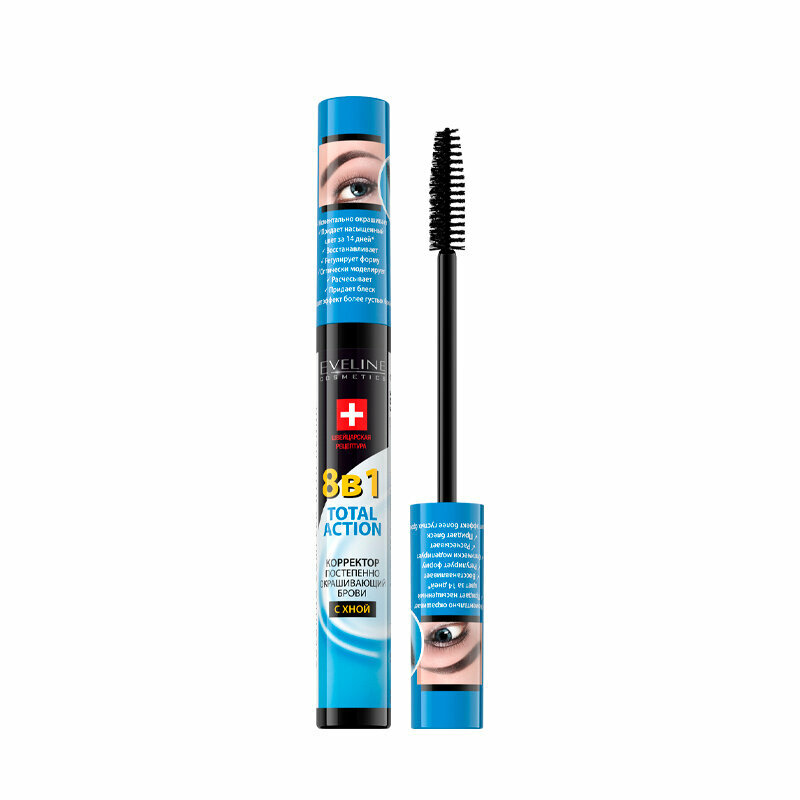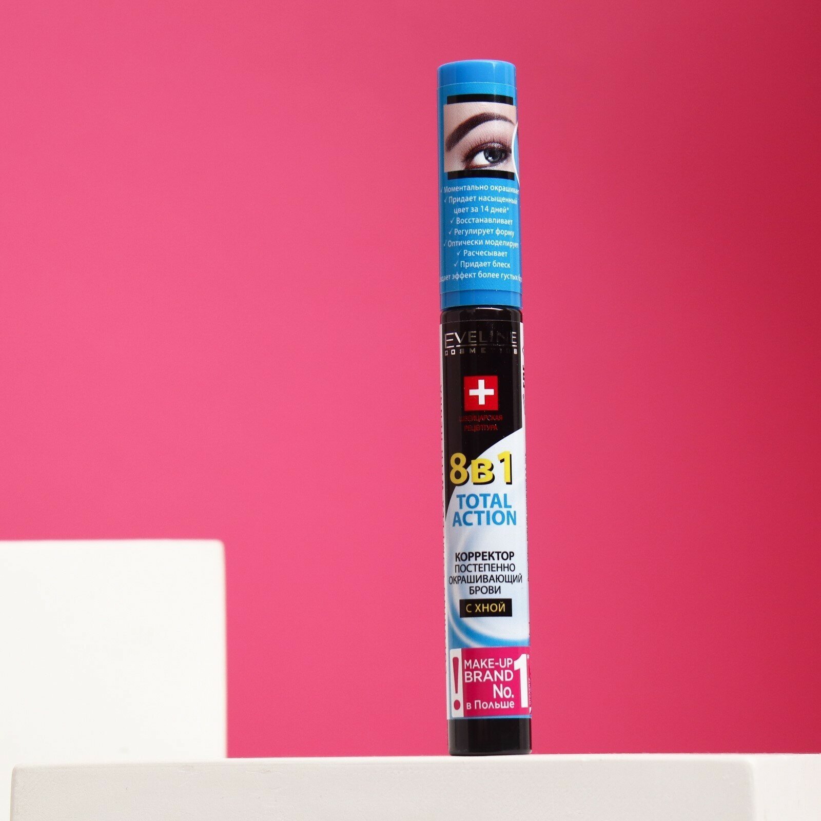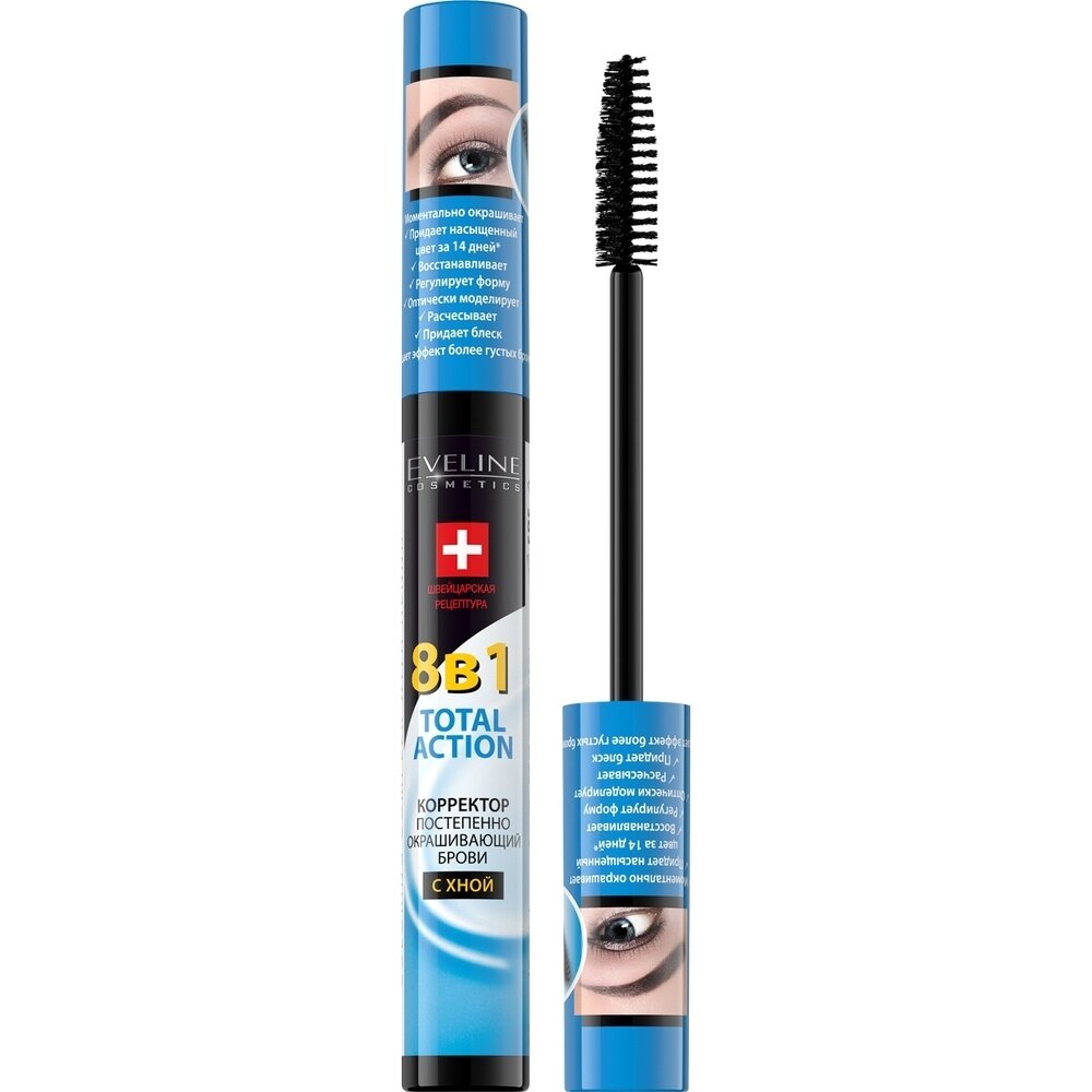 Корректор для бровей Eveline 8в1 Total Action с хной постепенно окрашивающий, 10мл