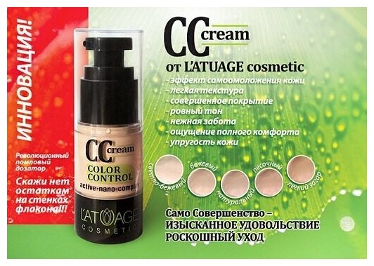 L'atuage "Тональный крем LATUAGE COSMETIC CC" Крем тональный L`ATUAGE COSMETIC CC "Светло бежевый"