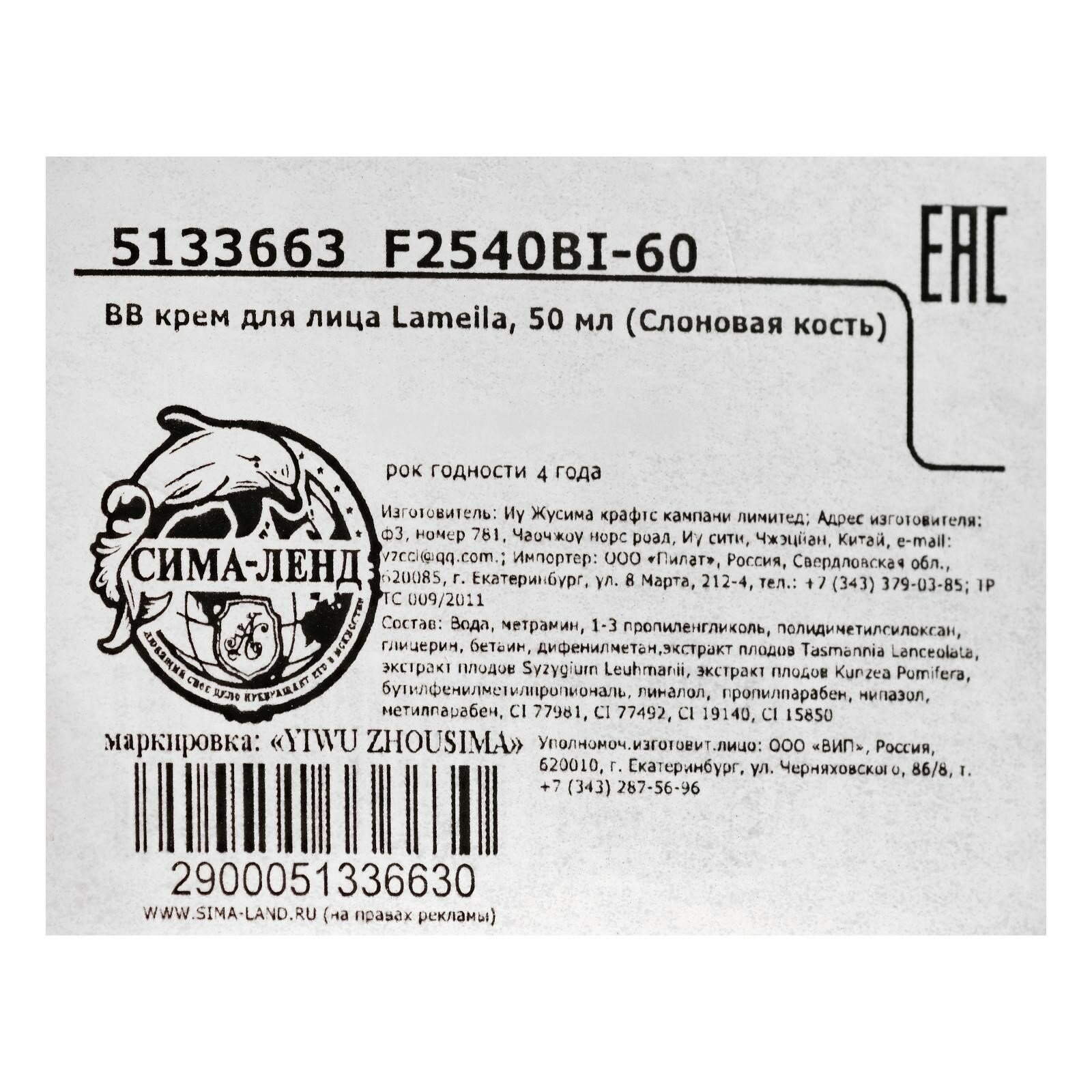BB крем для лица Lameila, 50 мл (Слоновая кость) 5133663