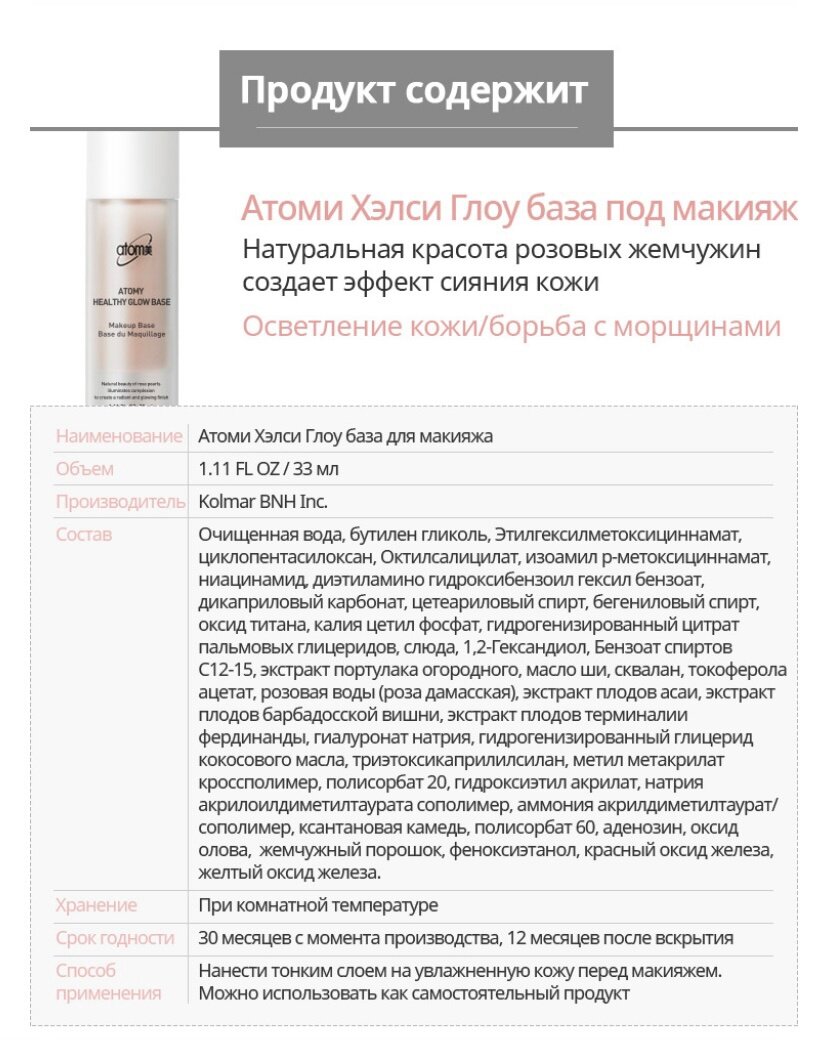 Atomy / Атоми Хэлси Глоу / Healthy Glow Base SPF 30 PA++ интересное: