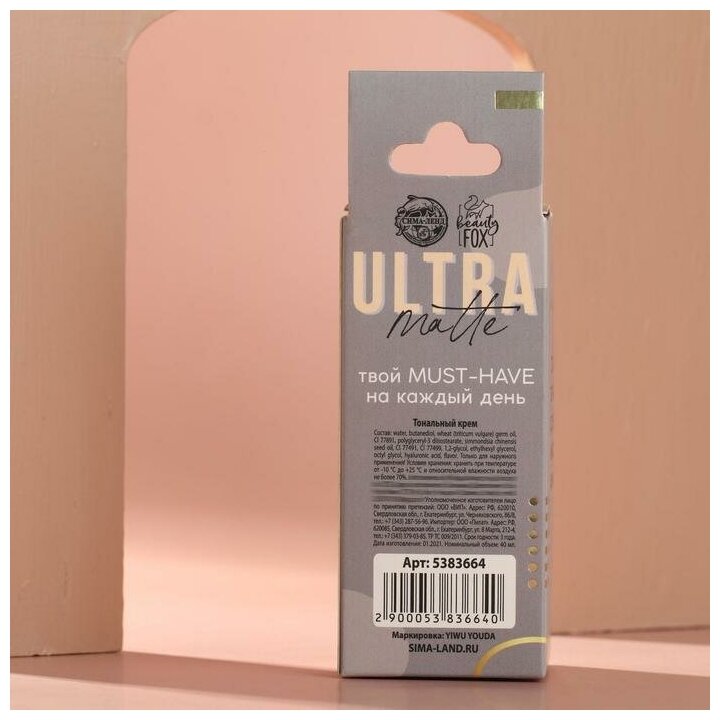 Матирующий тональный крем Ultra matte, оттенок 03, темно-бежевый, 40 мл Beauty Fox 5383664 .