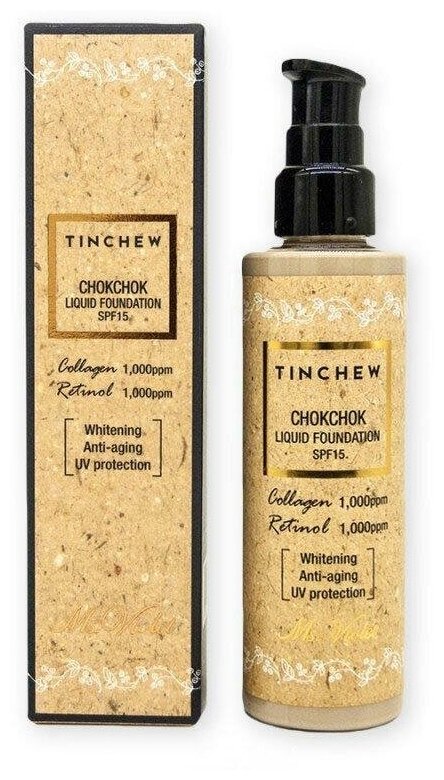Tinchew Тональный крем с коллагеном и ретинолом увлажняющая Chokchok Liquid Foundation SPF15 Natural Beige, тон 21, натуральный бежевый, 110 ml