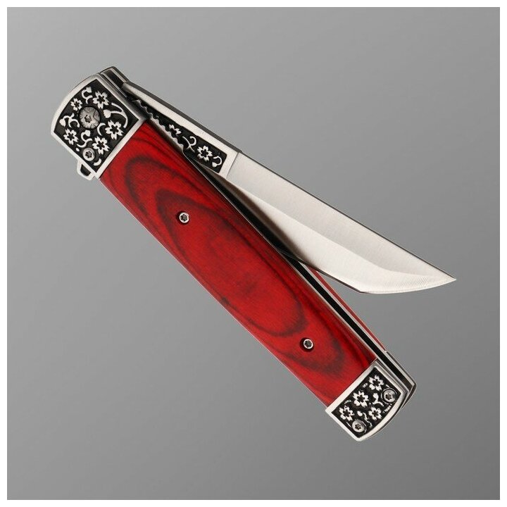 Market-Space Нож складной Танто полуавтоматический, ручка дерево 22,8см, клинок 9,5см