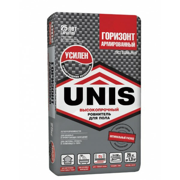 Юнис Горизонт Армированный стяжка пола (25кг) / UNIS Горизонт Армированный высокопрочный ровнитель для пола (25кг)