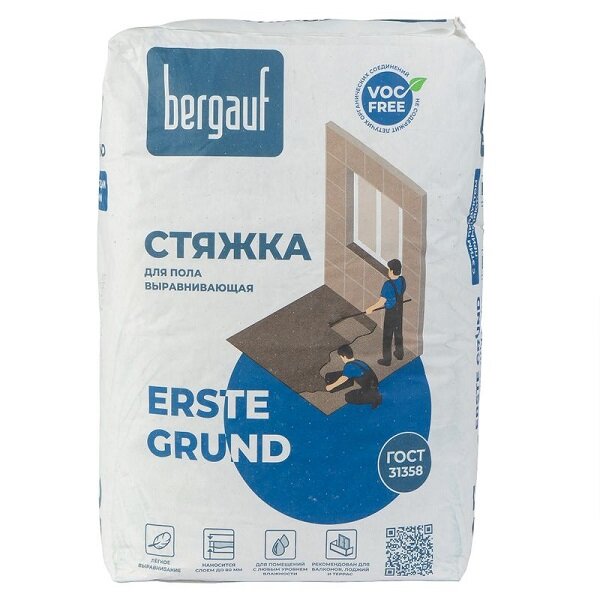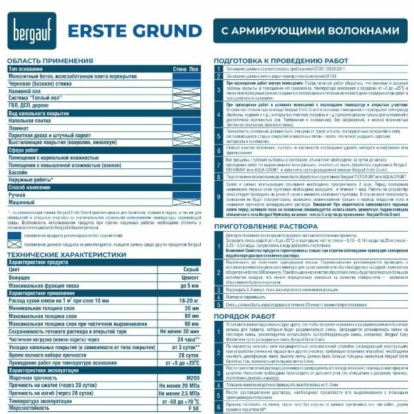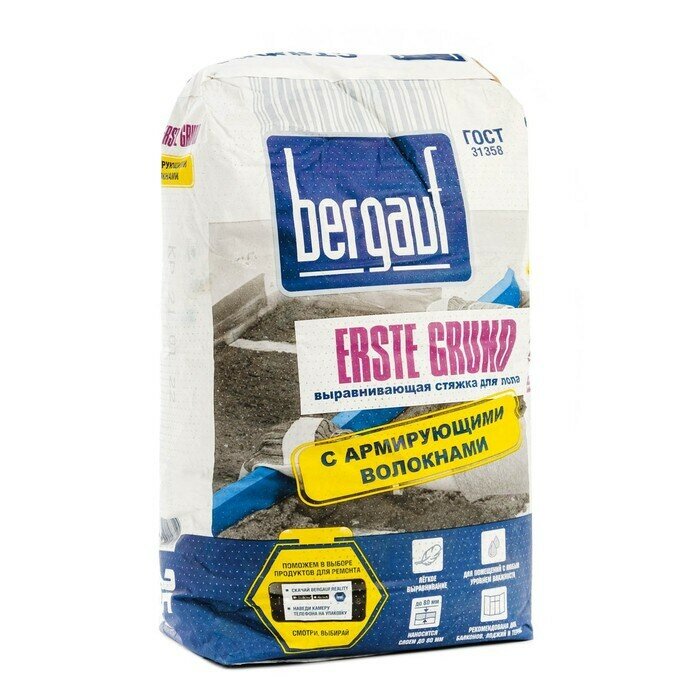 Стяжка пола BERGAUF ERSTE GRUND, армирующими волокна 25кг интересное: