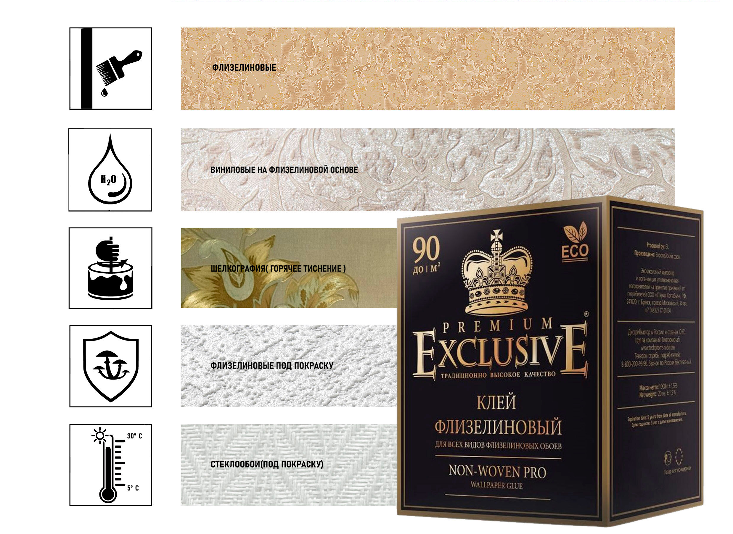 Клей для флизелиновых обоев Exclusive Pro до 90 м2, 500 гр интересное: