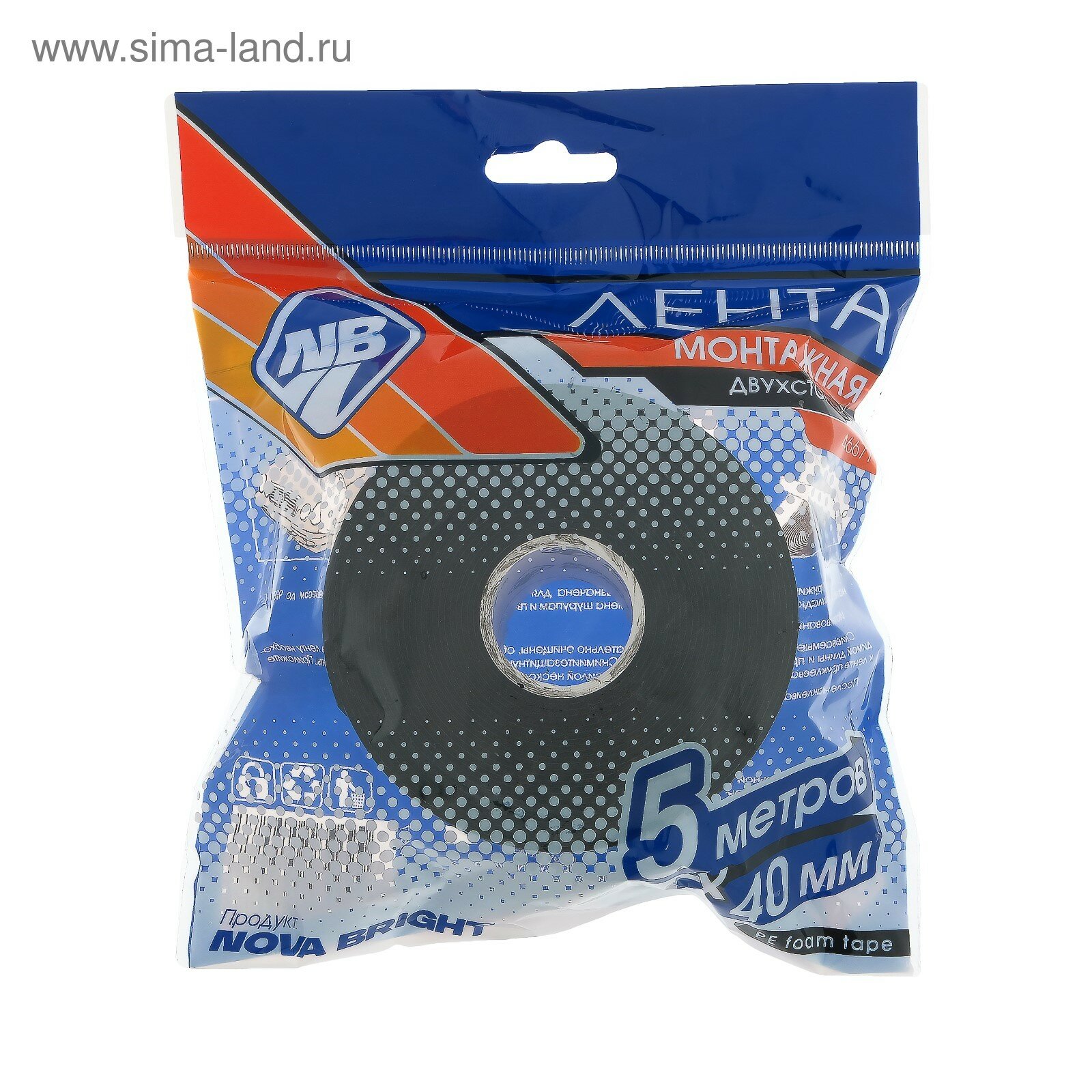 Nova Bright Лента клеящая двусторонняя Nova Bright, на вспененной основе, 40 мм х 5 м