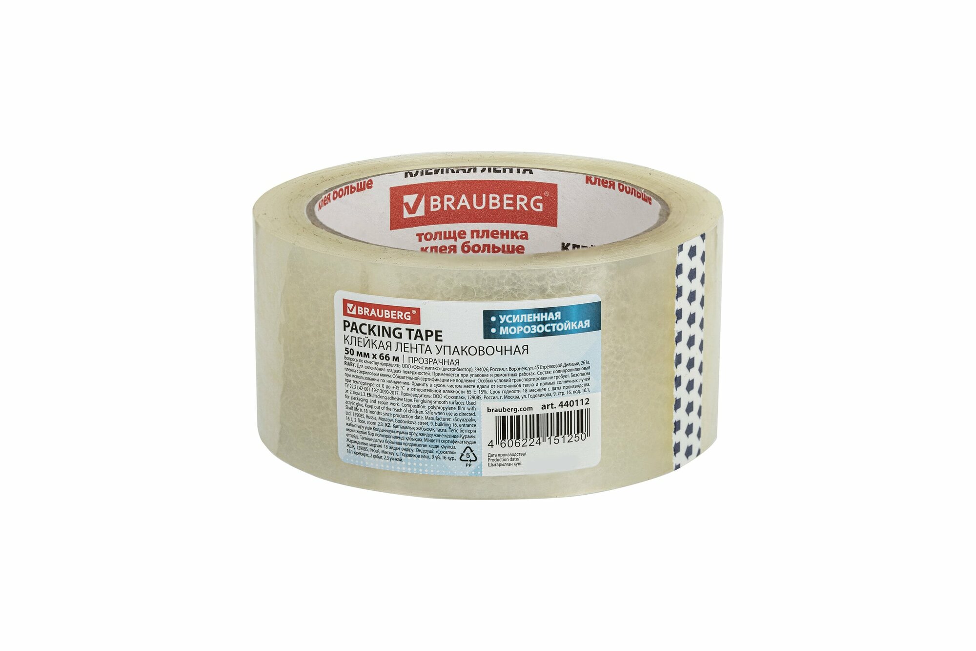 Клейкая лента (скотч) упаковочная Brauberg (50мм x 66м, 50мкм, усиленная, прозрачная, морозостойкая) (440112) интересное:
