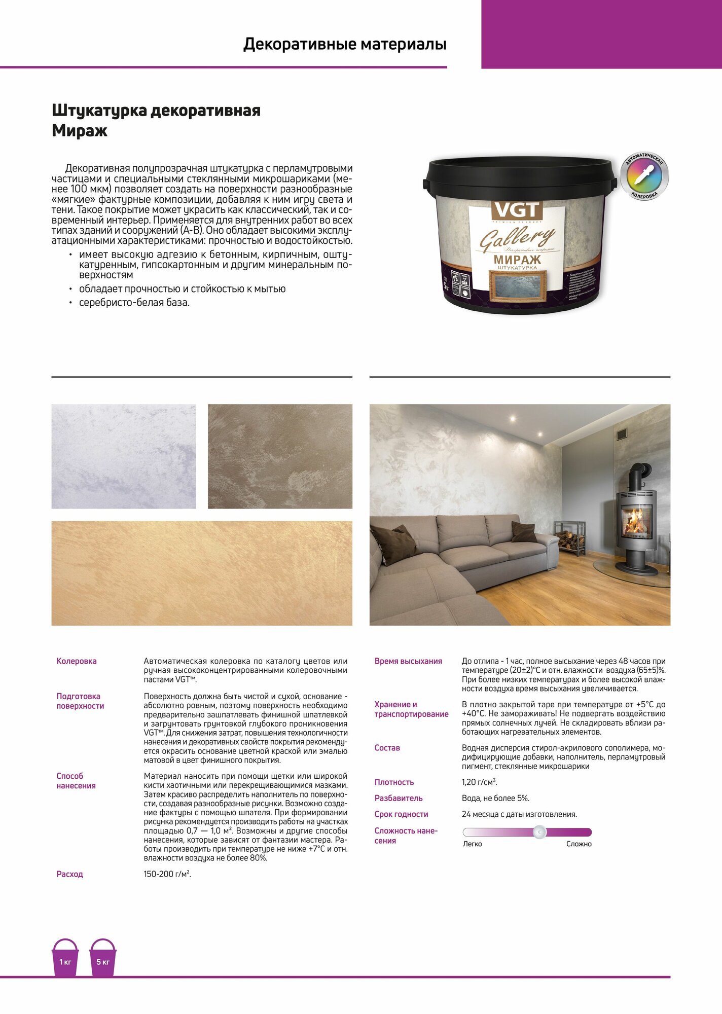 СохранитьШтукатурка декоративная VGT Gallery мираж полуглянцевая (5кг) серебристо-белый интересное: