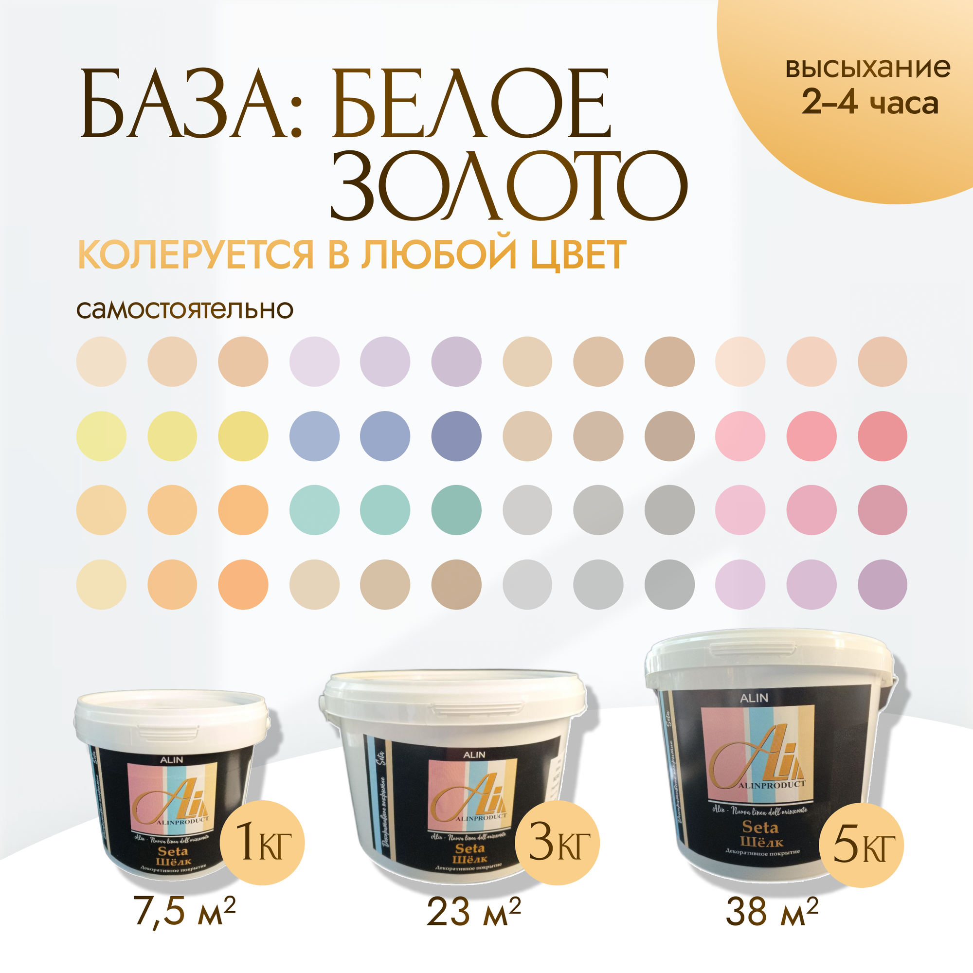 Краска, Декоративное покрытие ALINPRODUCT Шелк Сета Seta база золото - перламутровая декоративная штукатурка для имитации мокрого шелка Акриловая, Фактурная, *Декоративная, Глянцевое покрытие, 3 кг, золотистый