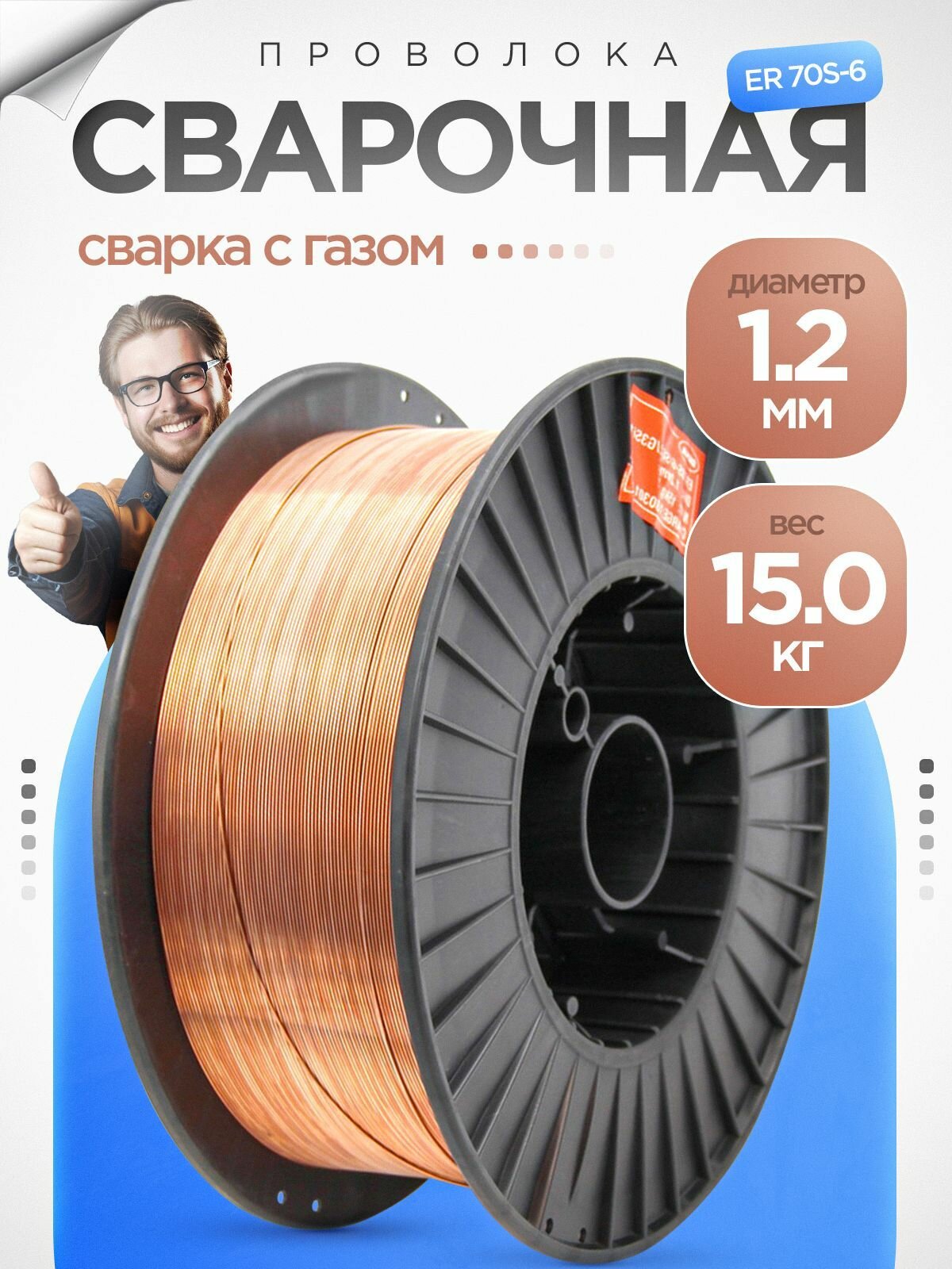Проволока 1,2мм сварочная омедн СВ08Г2С 15кг ER70S-6