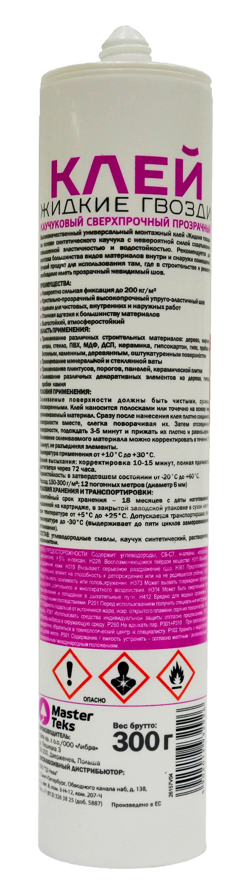 Клей каучуковый MasterTeks PM сверхпрочный, прозрачный 0,3 кг интересное: