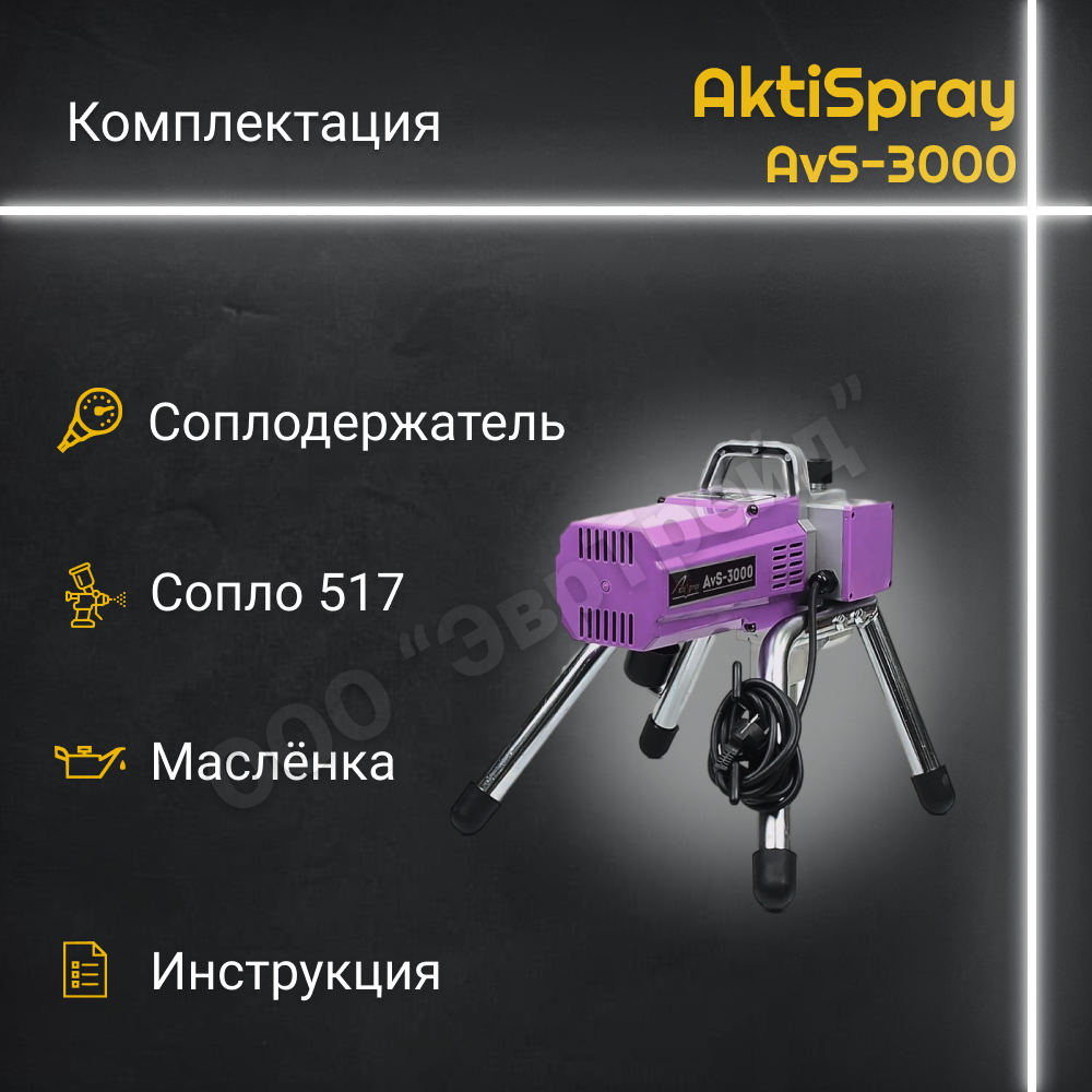Аппарат окрасочный AktiSpray AvS-3000, комплект (3,0 л/мин, 220 бар, 1600 Вт, 220 В, 50 Гц) интересное: