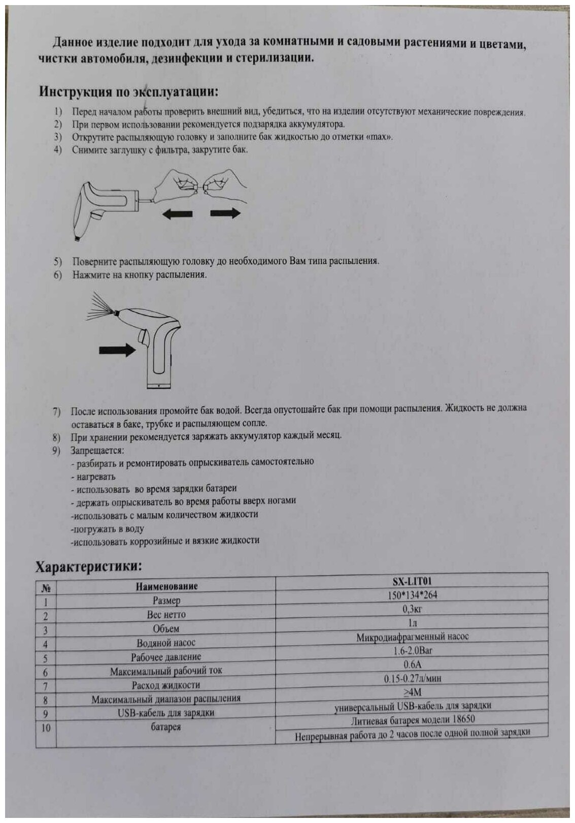 Опрыскиватель аккумуляторный Садовита 1л USB интересное:
