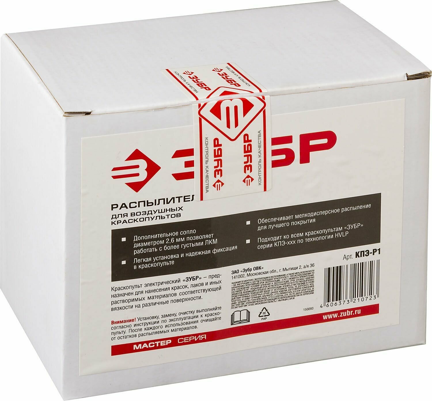 ЗУБР Распылитель воздушных краскопультов, ЗУБР КПЭ-Р1, тип Р1, в комплекте сопла 1.8 и 2.6мм, ( КПЭ-Р1 )