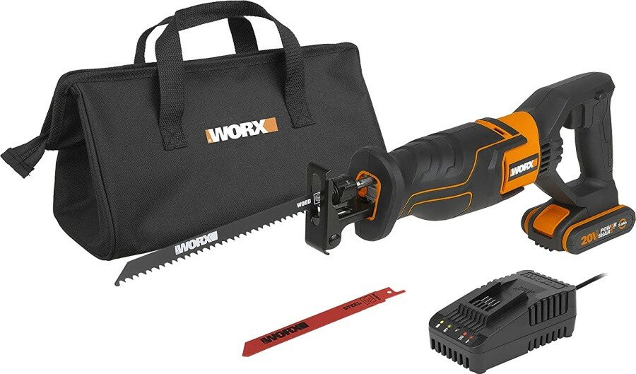 Сабельная пила WORX WX500 20V аккумуляторная с 2Ач батареей, 2А зарядкой и сумкой